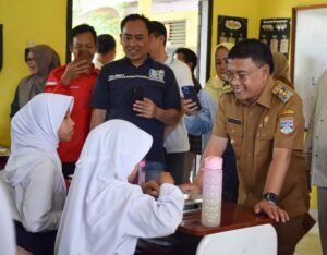WARTASERUNDINGAN.COM – Bupati Muratara H Devi Suhartoni meninjau pemberian makan bergizi bagi anak anak sekolah.