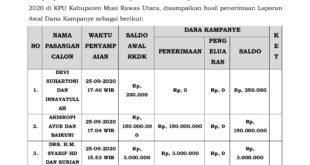 Read More »Laporan Awal Dana Kampanye Pasangan Calon di Pilkada Muratara 2020
