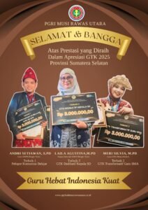 WARTASERUNDINGAN.COM – Rasa bangga dan haru menyelimuti keluarga besar PGRI Kabupaten Musi Rawas Utara (Muratara) setelah tiga guru terbaik dari Bumi Beselang Serundingan berhasil menorehkan prestasi membanggakan di ajang Apresiasi Guru dan Tenaga Kependidikan (GTK) Provinsi Sumatera Selatan Tahun 2025.