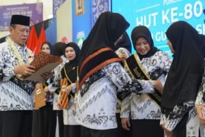 WARTASERUNDINGAN.COM — Hj. Nafisah Wahyudi resmi menerima amanah sebagai Ibunda Guru Kabupaten Musi Rawas Utara (Muratara) setelah dilantik pada puncak peringatan HUT ke-80 PGRI dan Hari Guru Nasional (HGN) tingkat Provinsi Sumatera Selatan. Kegiatan tersebut berlangsung di Gedung Perahu Kajang Kayu Agung, Kabupaten Ogan Komering Ilir, pada Selasa (02/12/2025).